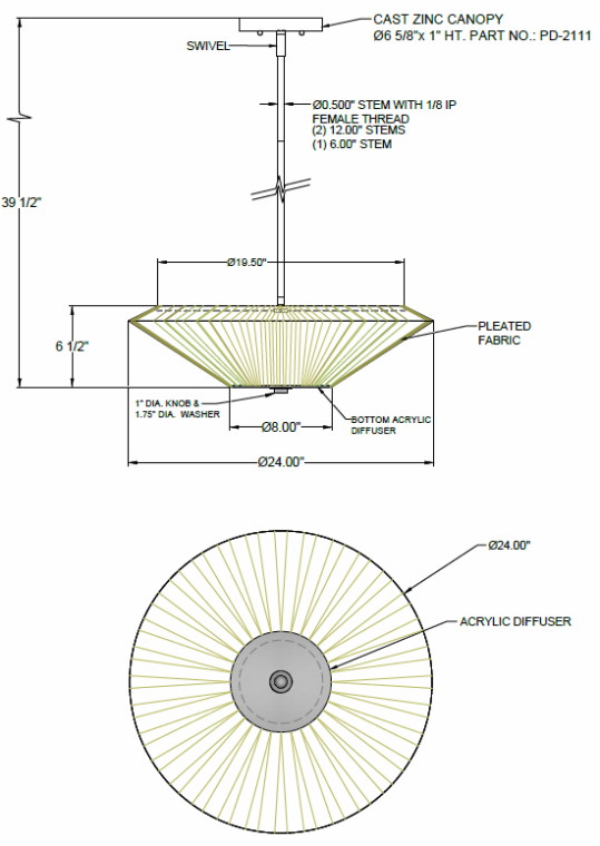 Shade: 19 1/2″ x 8″ x 6 1/2″