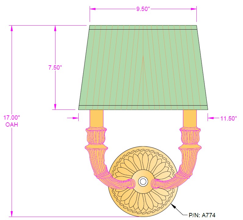 Shade: (9.5″ x 7.5″) x (11.5″x 7.5″) x 7 1/2″