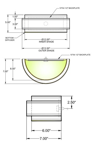 Shade: (13 1/2″ x 7″) x (3 1/2″ x 7″) x 5″